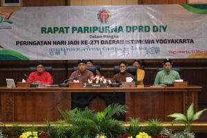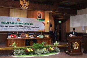 Rapat paripurna tersebut dipimpin oleh Ketua DPRD DIY Nuryadi, S.Pd., dan dihadiri sekitar 100 undangan yang terdiri dari unsur Forkopimda DIY dan pejabat pemerintah daerah di wilayah DIY.